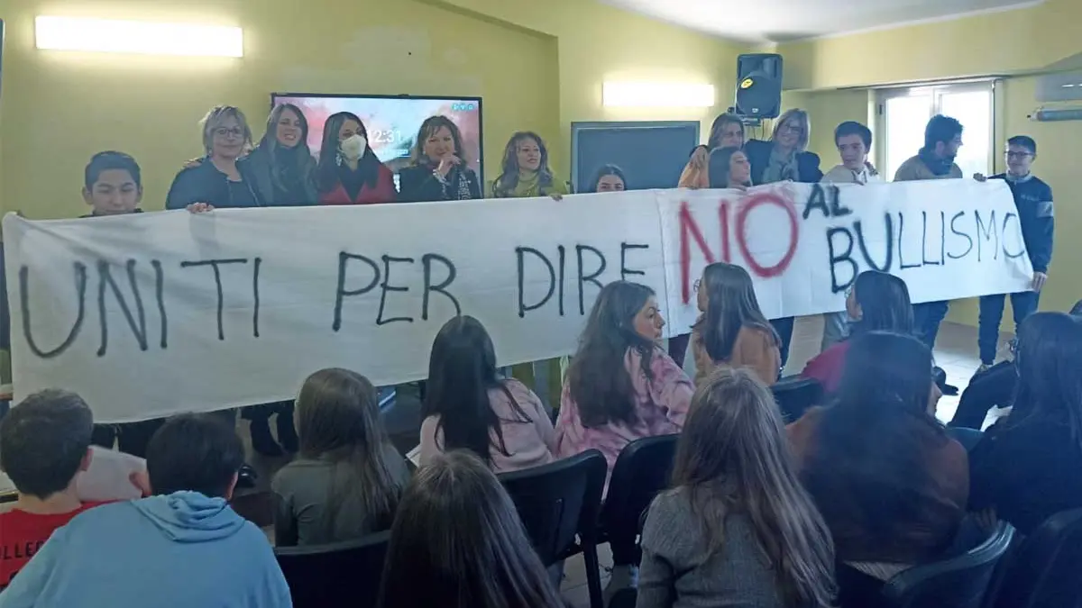 “Uniti per dire no al bullismo”: è la frase scritta sullo striscione preparato dagli alunni dell’Istituto comprensivo “Tommaso Cornelio” di Rovito che hanno partecipato all’incontro promosso dal Kiwanis International “Cosenza Città degli Enotri”. I lavori sono stati aperti da Delly Fabiano, presidente del club Città degli Enotri.