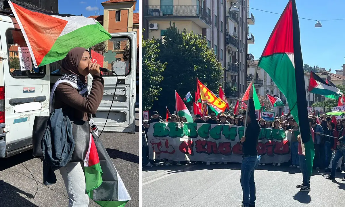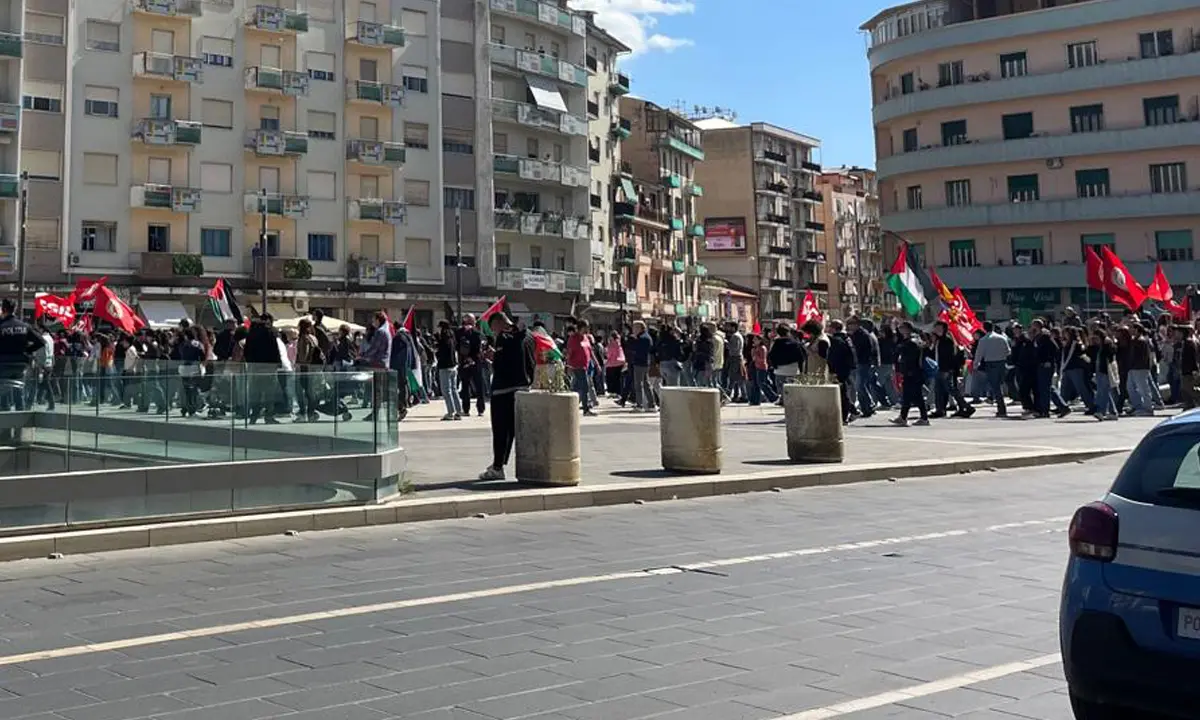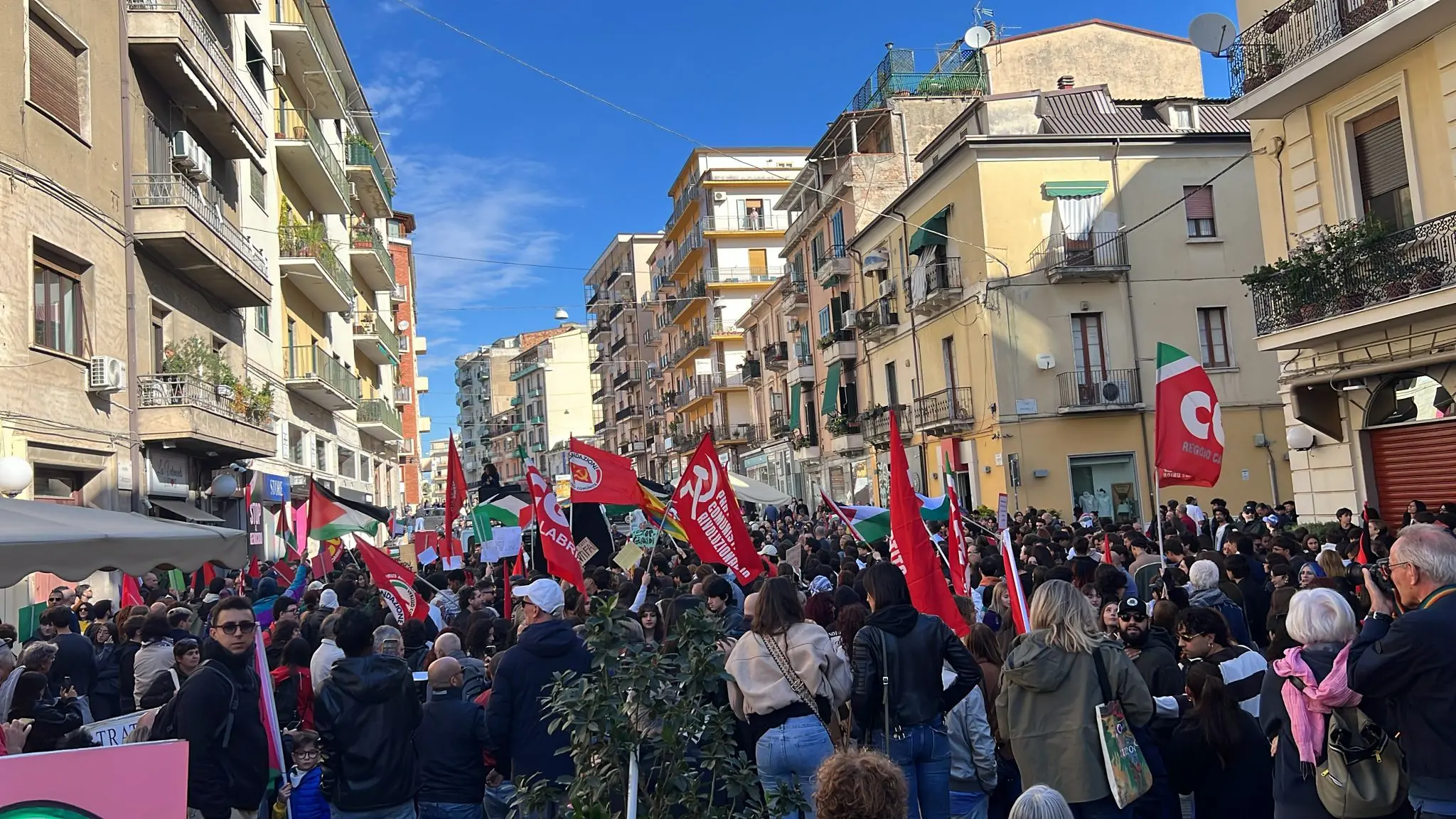 I manifestanti si sono concentrati a Piazza Bilotti, con il corteo pro Palestina di Cosenza che viaggia verso il termine dello sciopero generale.