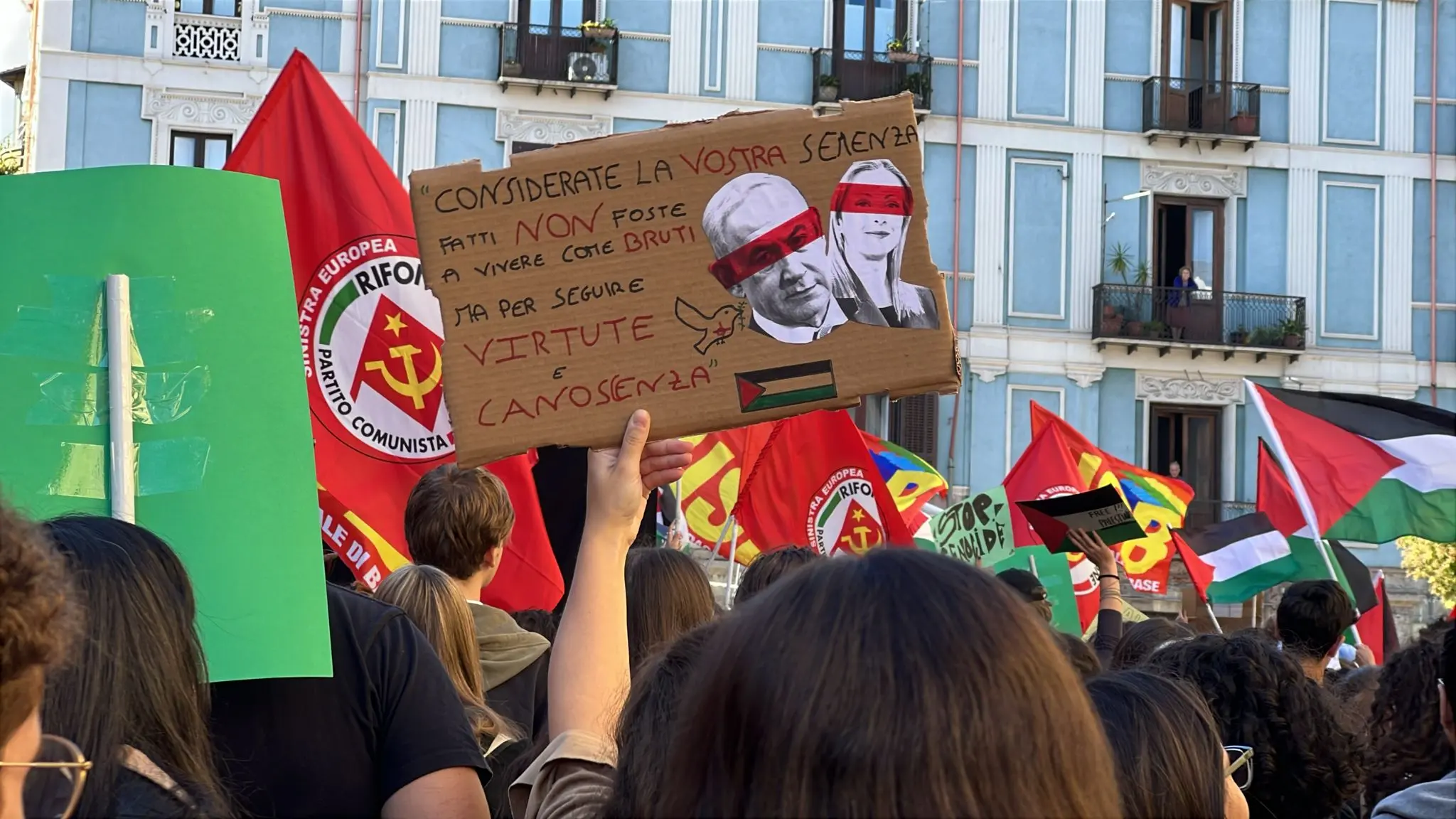 Molti gli studenti delle scuole superiori che arrivano da tutta la provincia, alcuni anche da Acri: stanno sfilando insieme al resto dei manifestanti in maniera composta sventolando i loro vessilli e mostrando i cartelli con cui stigmatizzano l'operato di Giorgia Meloni e Benjamin Netanyahu.