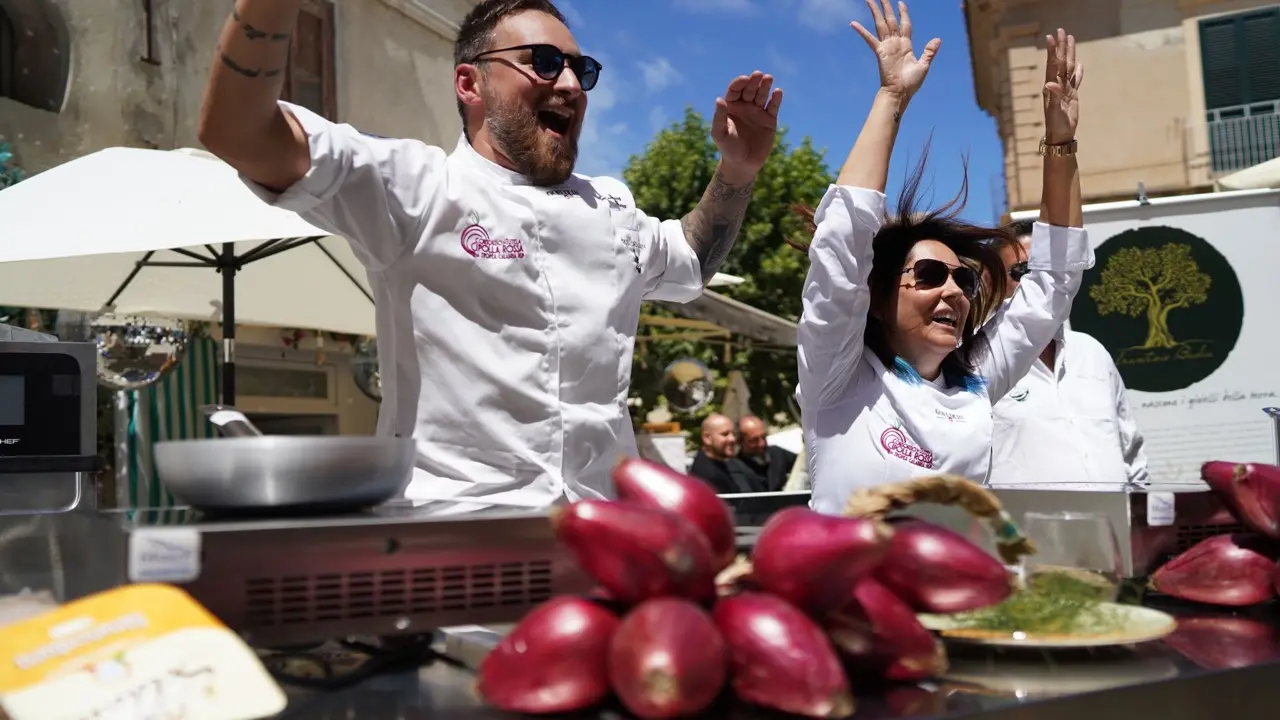 La delicatezza della brezza marina dall’affaccio del Borgo dei Borghi 2021, il sorriso della generazione Cipolla, i bambini protagonisti di laboratori sensoriali nell’area kids; le installazioni che richiamano ai prodotti della terra ed icone della tradizione agroalimentare calabrese; il profumo del risotto d’autore dello chef Riccardo Sculli, bagnato da un brodetto di triglia ed accompagnato da una cialda di cipolla, risultato dell’infusione con vino gaglioppo e zucchero; la simpatia dirompente dei seguitissimi foodblogger Federico Fusca e Francesca Gambacorta (Frafoodlove); solidarietà e lotta allo spreco alimentare. Sono, alcune delle istantanee della prima giornata del Tropea Cipolla Party partito oggi (venerdì 16). Eventi fino a domenica 18 luglio.