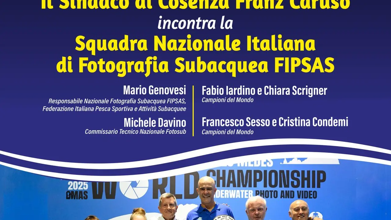 Cosenza si prepara a celebrare uno dei suoi orgogli sportivi più luminosi. Sabato 15 novembre, infatti, la città accoglierà la Squadra Nazionale Italiana di fotografia subacquea FIPSAS, reduce dall’eccezionale successo ai Mondiali di Spagna, dove ha conquistato ben 12 medaglie.